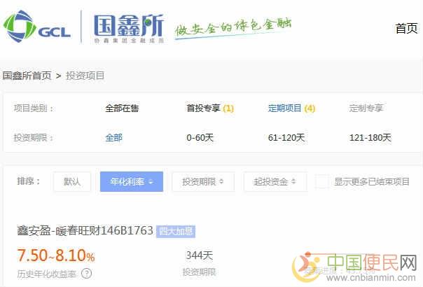 协鑫集成(002506.sz)旗下互联网金融平台“国鑫所”发布首个标的,一个月期“鑫安盈”产品开售仅1分钟即售罄,表现出市场对于优质理财产品的需求十分旺盛。  国鑫所平台是协鑫集成实践产融结合的第一个落地平台,打通了协鑫集成“设计+产品+服务”的最后一个金融服务环节,使得协鑫集成业务模式更加丰富,核心竞争力更强c~n~b~i~a~n~m~i~n~c~o~m。  此次首发的“鑫安盈”产品,定位于创新型的供应链金融模式。供应链金融即依托央企、国企及优质上市公司作为核心企业的良好信用,以及核心企业与行业上下游供应商、经销商之间的真实贸易背景,帮助供应商、经销商进行经营资金的融资。供应链金融可以帮助核心企业管理上下游中小企业的物流和资金流,并把单个企业的不可控风险转变为供应链整体的可控风险c n b i a n m i n c o m。“鑫安盈”为大型核心企业的上游供应商提供应收账款债权融资服务。  “鑫安盈”产品起投金额为1000元,首发“鑫安盈”001号投资期限为1个月,年化收益高达7.2%。  国鑫所从全方位保障投资人的投资安全:从平台安全角度,国鑫所拥有强大的股东背景和三级严格监管体系;通过专业的风险控制能力,重重过滤优质可靠资产和全程动态监控,建立严格的风控金字塔;第三方独立托管,通卡进出,加密保护和资金监管,保障资金安全;最后还有效保护客户的隐私安全和数据信息安全fGN。  未来,依托协鑫集团“能源O2O战略”和“智慧交通发展规划”,国鑫所还将拓展到产业链交易管理和信息服务领域,和个人能源管理和金融服务领域,打造以“能源+互联网+金融”三者融合的发展方向,定位于“一站式综合能源金融信息服务平台”,为协鑫集成发展产融结合战略提供更多创新思路和金融支持。 国鑫所主要开展国鑫所理财什么好、国鑫所理财哪里好、服务好,售后好的国鑫所奖励金、国鑫所奖励金的介绍等项目运营。在项目高速发展的同时,国鑫所始终强调外部机会与内部管理的平衡,十分注重企业核心竞争力的培养和塑造www.cnbianmin.com中国便民网。公司将客户服务价值作为企业的核心竞争力,秉承“诚信正直、追求卓越、尊重个人”的企业精神,努力为客户提供诚信可靠的鑫安盈。