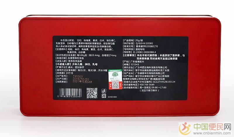 本品是以阿胶、当归、熟地黄、黄芪、白术、维生素C、乳酸亚铁、白砂糖为主要原料制成的保健食品,经动物功能和人体试食试验证明,具有改善营养性贫血的保健功能。来源www.cnbianmin.com